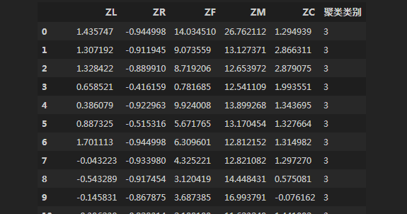 r3.columns = list(df4.columns) + [u’聚类类别’]  # 重命名表头
