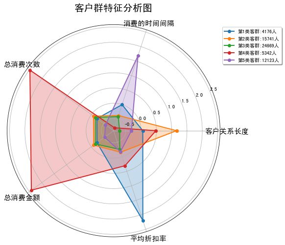 plt.savefig(“客户群特征分析图.jpg”,dpi=200)