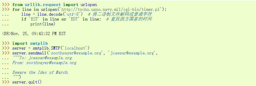python里包含了许多访问互联网和处理互联网协议的模块. 其中最简单的两个分别是, 从网址中检索数据的 urllib.request 模块, 和发送邮件的 smtplib 模块: